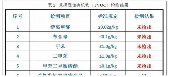 硅烷改性聚醚膠屬于本體型膠粘劑,總揮發有機物(TVOC)小,生產過程中沒有苯、醛類等原材料,同時產品也不會釋放這些有害氣體。下表是我司某款硅烷改性聚醚膠的TVOC檢測報告,未檢出甲醛、苯、異氰酸酯等有害物質,TVOC含量僅11g/kg,遠低于標準要求的50g/kg。