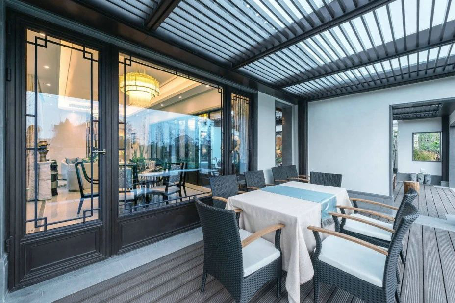 新中式門窗在追求美的同時,也追求高品質給客戶帶來高端的生活享受。栢景新中式門窗采用多腔體結構的鋁合金型材和中空鋼化玻璃,結合EPDM汽車級密封膠條,多重密封防護,隔絕室外的喧囂與嘈雜,營造出怡清養心的寧靜環境。