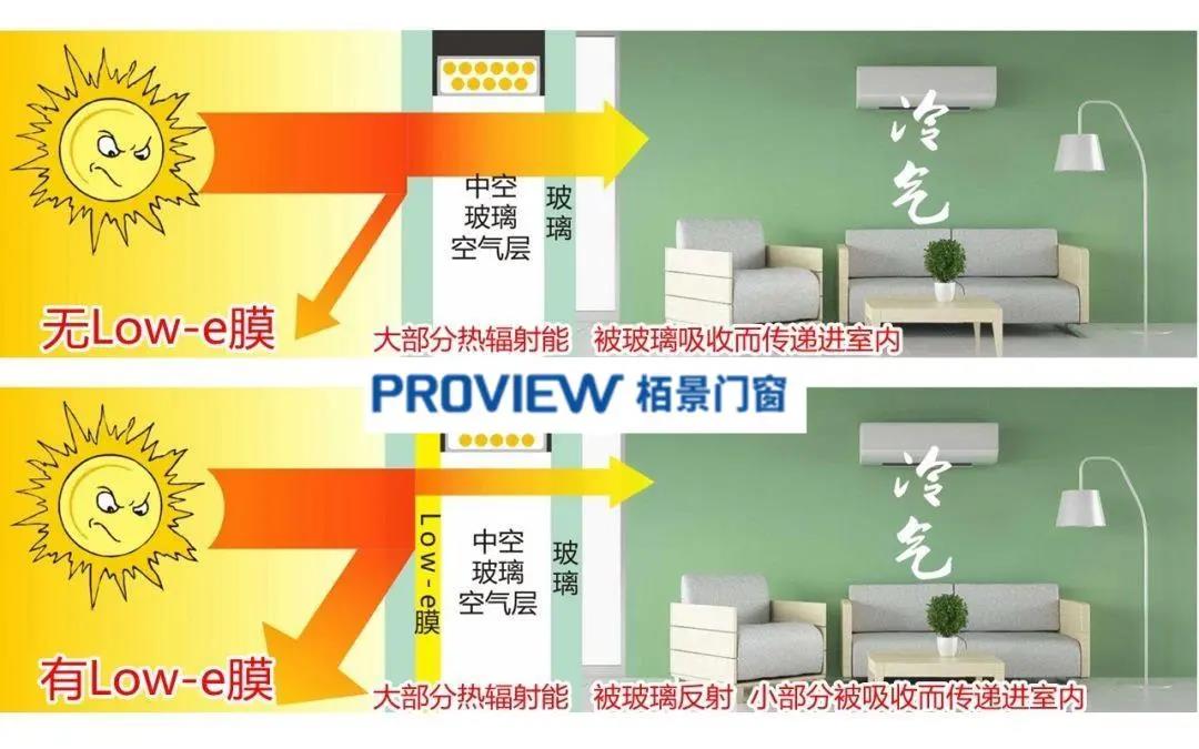 Low-e玻璃能反射大部分光輻射能量,從而使室內傳遞的熱量就少。中空玻璃在隔絕熱氣的滲透的同時還可以降噪,節能又隔音。因為兩塊玻璃之間是中空的,無法接觸,更加降低熱傳導。