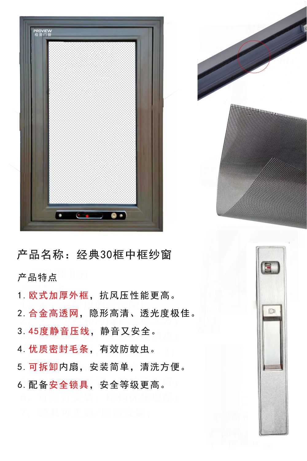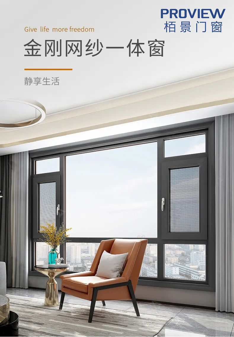 栢景門窗金剛網紗窗采用優質鋁材,長久使用也不易變形;極簡設計操作便捷,經久耐用;采用國標304不銹鋼金剛紗網,紗窗編織密度小將蚊蟲拒之門外;多種顏色可選,實用與美觀兼備。