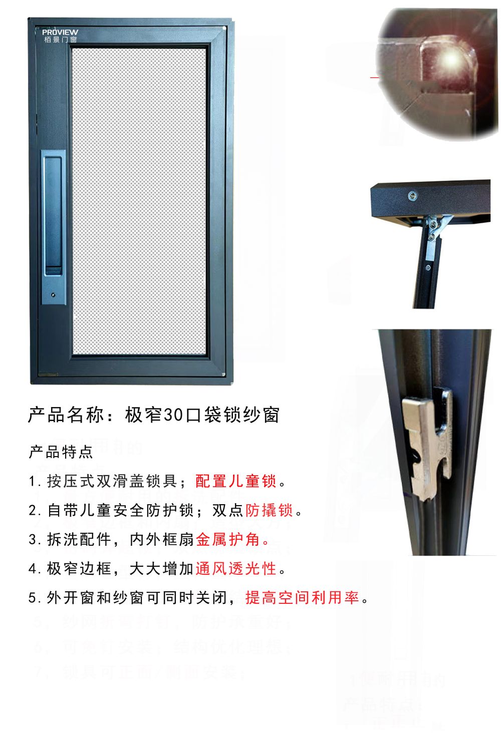 • 配備兒童安全鎖,鎖住隱患,牢固耐用,預防高空墜物危險。