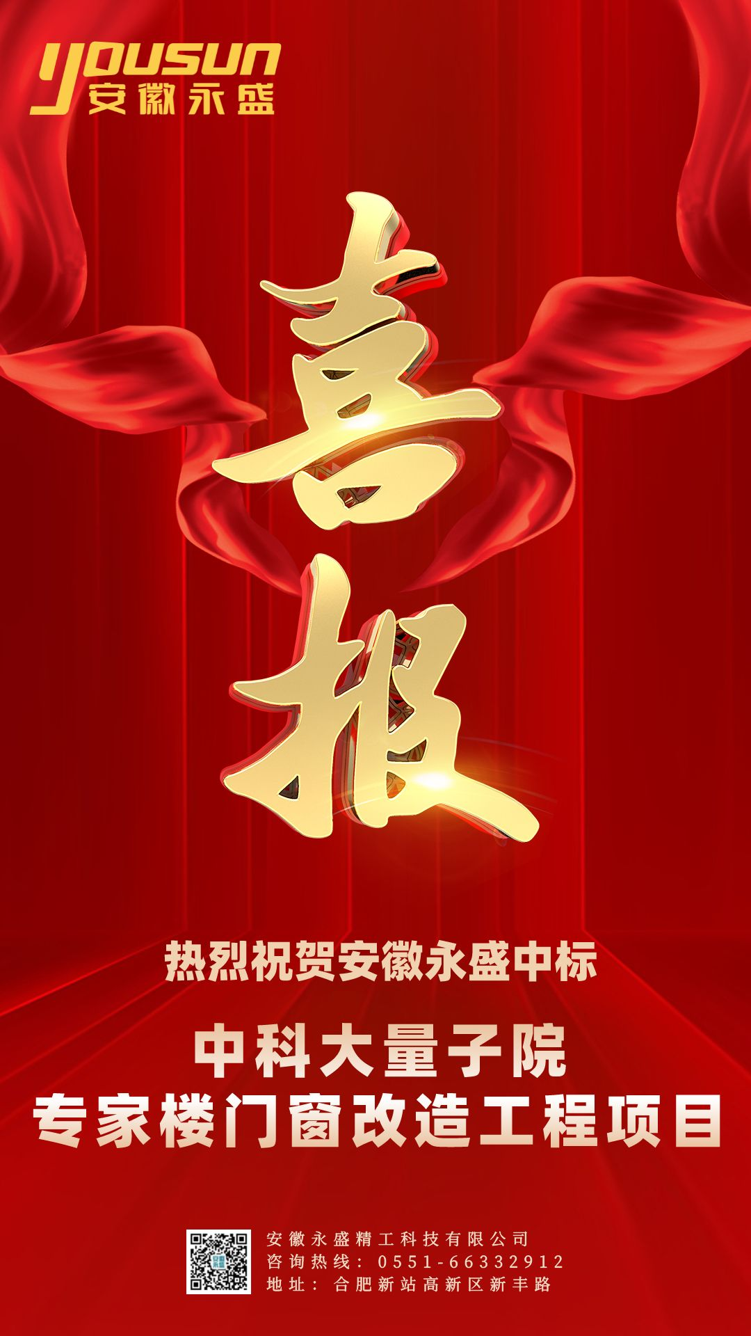 近日,安徽永盛以優(yōu)質(zhì)的品牌口碑、領(lǐng)先的技術(shù)優(yōu)勢、完善的配套服務(wù)從眾多投標競爭者中脫穎而出,成功中標中科大量子院專家樓門窗改造工程項目。這是對安徽永盛綜合實力的肯定,為公司在高端門窗項目改造上的發(fā)展增添了濃墨重彩的一筆。