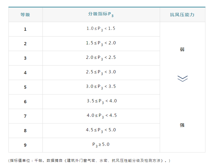 抗風壓性能是指關閉著的外(門)窗在風壓作用下,不發生損壞和功能障礙的能力。抗風壓性能一共分為9個等級,等級越高代表其抗風壓能力就越強。值得注意的是,抗風壓性能等級并不等同于臺風等級。抗風壓性能9級表示窗戶可承受5000pa以上的風壓,但不能簡單對應同樣的臺風等級。